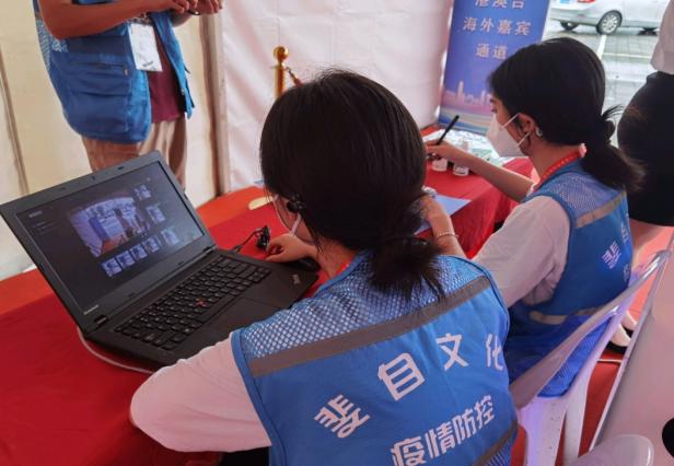 实践队成员在各疫情防控点位检查行程码及是否具有48小时内核酸检测报告,维护场馆秩序,督促现场嘉宾配合疫情防控工作,控制活动现场人员密度,保障应急通道畅通。“青衿致远”志愿服务队作为志愿者亲身体验了整个展会的疫情防控流程,正确认识了疫情防控体系,意识到每个人都应该毫不动摇地坚持“动态清零”总方针,以时不我待的精神、分秒必争的行动抓实抓细疫情防控各项工作。