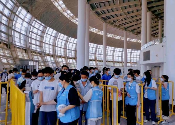 由海峡教育报社、福建教育电视台联合主办的“2022年福建省普通高校招生咨询会(福州专场)”在福州海峡国际会展中心举行,本次活动共吸引100多所省内外高校参加,为家长、考生和高校搭建了零距离交流的权威平台,为统筹做好疫情防控工作。“青衿致远”志愿服务队以青年志愿者身份负责此次活动的入馆疫情防控工作。