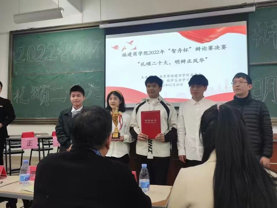 为丰富校园文化生活,进一步提高同学们的逻辑思维能力和语言表达能力,培养团队合作精神,以及更好地学习贯彻党的二十大精神,2023年2月28日下午我校举办了2022年“智舟杯”辩论赛决赛。经过层层选拔,我校连江校区和马尾校区共有四支队伍脱颖而出,挺进决赛。