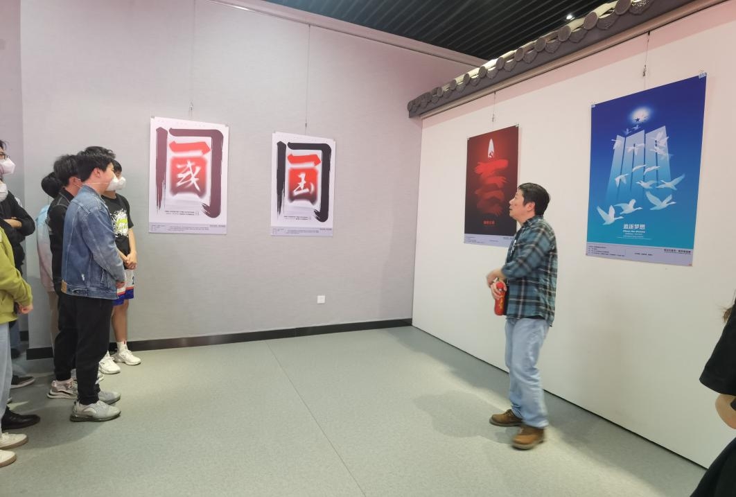 在展览过程中,范老师用风趣幽默的语言向大家讲解每一张作品背后的设计灵感与设计思路,同时还向同学们讲述了这些作品背后的历史。随后,范老师给同学们讲解了富强、民主、文明、和谐、自由、平等、公正、法治、爱国、敬业、诚信和友善这二十四个词的含义,这二十四个词是想让大家知道,价值观是人们心中的深层信念,是判断是非的标准,是行动遵循的准则。一个国家和社会是否拥有广泛认同的核心价值观,直接影响到一个国家的凝聚力和影响力。