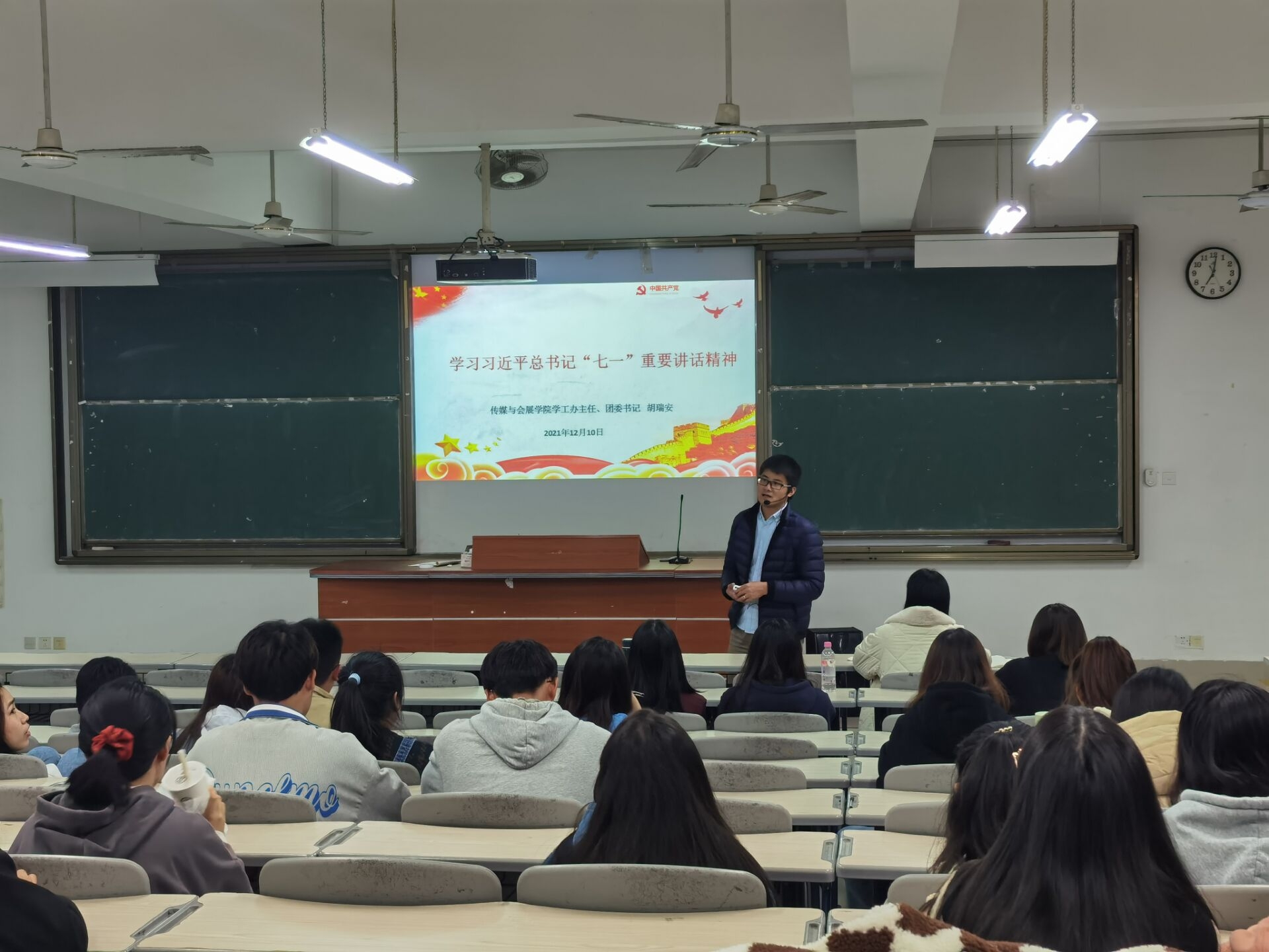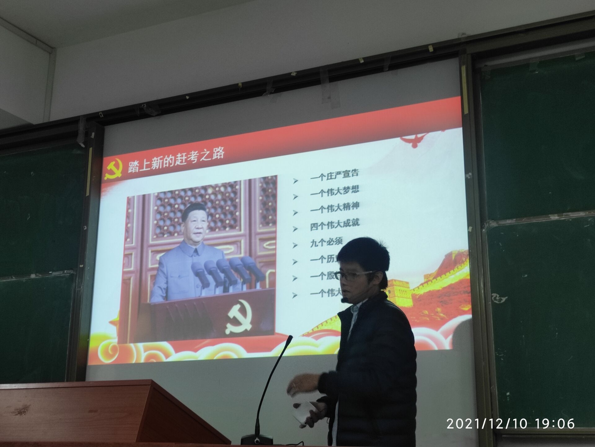 12月10日晚上太阳集团tyc33455学工办主任、团委书记胡瑞安老师在诚信楼中阶三教室开展学习贯彻习近平总书记“七一”重要讲话精神专题宣讲。