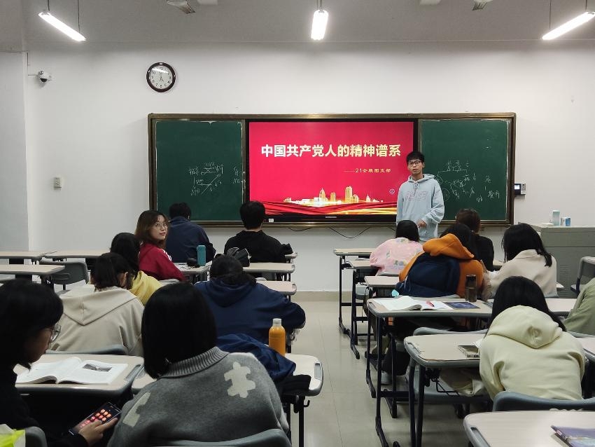 习近平总书记在党史学习教育动员大会上的重要讲话指出:“在一百年的非凡奋斗历程中,一代又一代中国共产党人顽强拼搏、不懈奋斗,涌现了一大批视死如归的革命烈士、一大批顽强奋斗的英雄人物、一大批忘我奉献的先进模范,形成了一系列伟大精神,构筑起了中国共产党人的精神谱系,为我们立党兴党强党提供了丰厚滋养。”为更好地引领、鼓舞我院师生弘扬革命精神、赓续红色血脉,不断增强“四个意识”、坚定“四个自信”、做到“两个维护”,为实现中华民族伟大复兴凝聚起奋勇前进的强大精神力量,各团支部积极响应,围绕“学习中国共产党人精神谱系”这一主题,开展了一系列主题团课活动。 我院各团支部都深入学习了中国共产党人精神谱系,深刻认识到伟大创造精神、伟大奋斗精神、伟大团结精神、伟大梦想精神,这些精神充分彰显了以爱国主义为核心的民族精神和以改革创新为核心的时代精神,是中国共产党人精神谱系的重要组成部分。 通过本次主题团课的学习,学生深入了解了中国共产党人精神谱系的深刻内涵,进一步激励学生以永不懈怠的精神状态和一往无前的奋斗姿态,坚持不懈、埋头苦干,争做有为的时代青年!