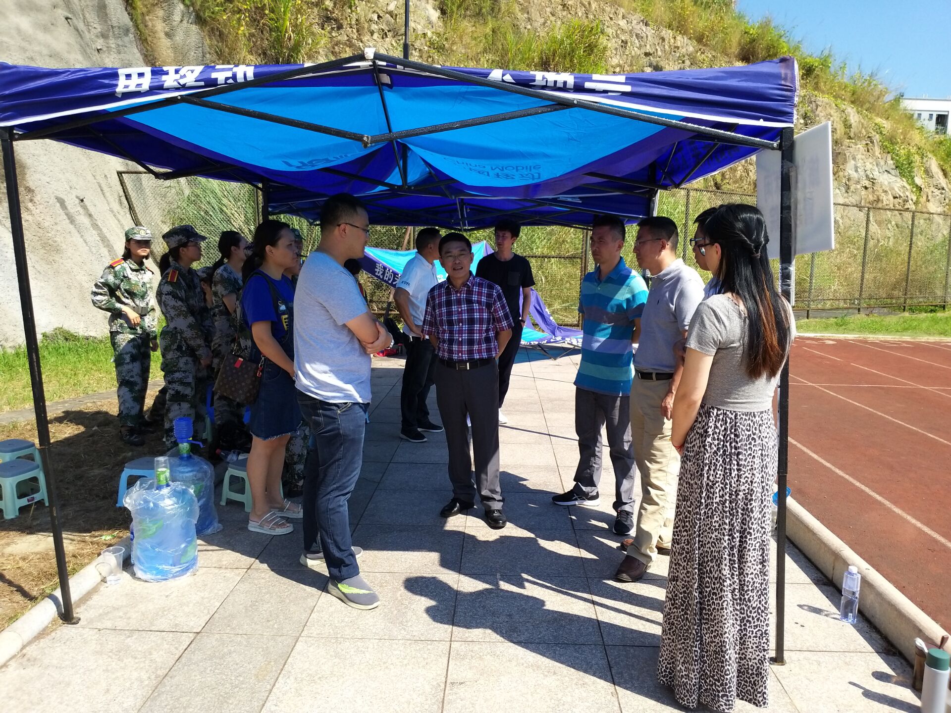 9月19-24日,校党委副书记吴访益、学院院长魏仁兴、院党委副书记张雄伟分别来到校田径场,了解太阳集团tyc33455军训工作,并看望学院2019级在训新生。