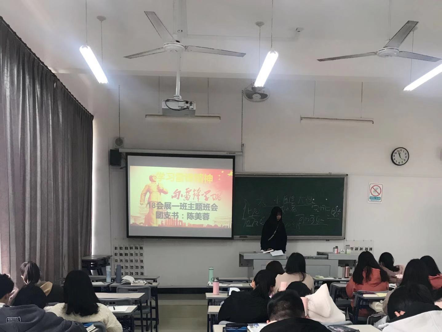 本次活动,为了深入学习贯彻习近平新时代中国特色社会主义思想和党的十九大精神,弘扬中华民族传统美德,引导广大青年学生继承优良传统,弘扬志愿服务精神。各班团支书都带领了班级同学观看了有关于雷锋精神的电影,并为本班同学讲解了雷锋精神以及如何继承雷锋精神。从影片中这些让人感动的小故事中,大家也感受到了集体的力量,正如雷锋说过的一句话:“一滴水只有放进大海里才能永远不干,一个人只有当他把自己和集体融合在一起的时候才能有力量。”有一些同学也积极发言与全班共同分享了自己曾经所做过的好人好事,以及应该怎么在日常生活本次会议在一定程度上能够筑牢班级同学们的思想道德防线,调动了班级同学的奋斗积极性。对同学的思想道德有了更深的影响,对雷锋精神有了更进一步的了解。