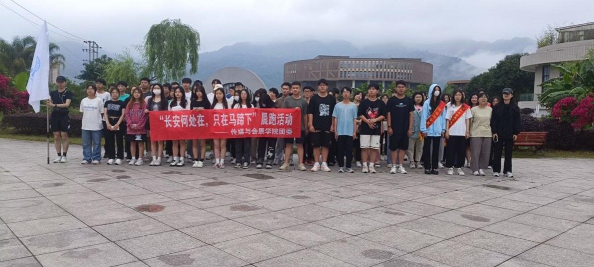 晨曦初露,传展学子怀着饱满的热情,迎着朝阳的第一缕光,早早来到了心湖前,等待晨跑开始。在正式晨跑前,本次活动负责人张明壹同学呼吁传展学子要深入学习“深学争优、敢为争先、实干争效”的精神,并提醒同学们“安全第一”等相关活动注意事项。在时令广场进行合影留念后,7点整活动成员在旗手杨启焱同学的带领下晨跑活动正式拉开帷幕。