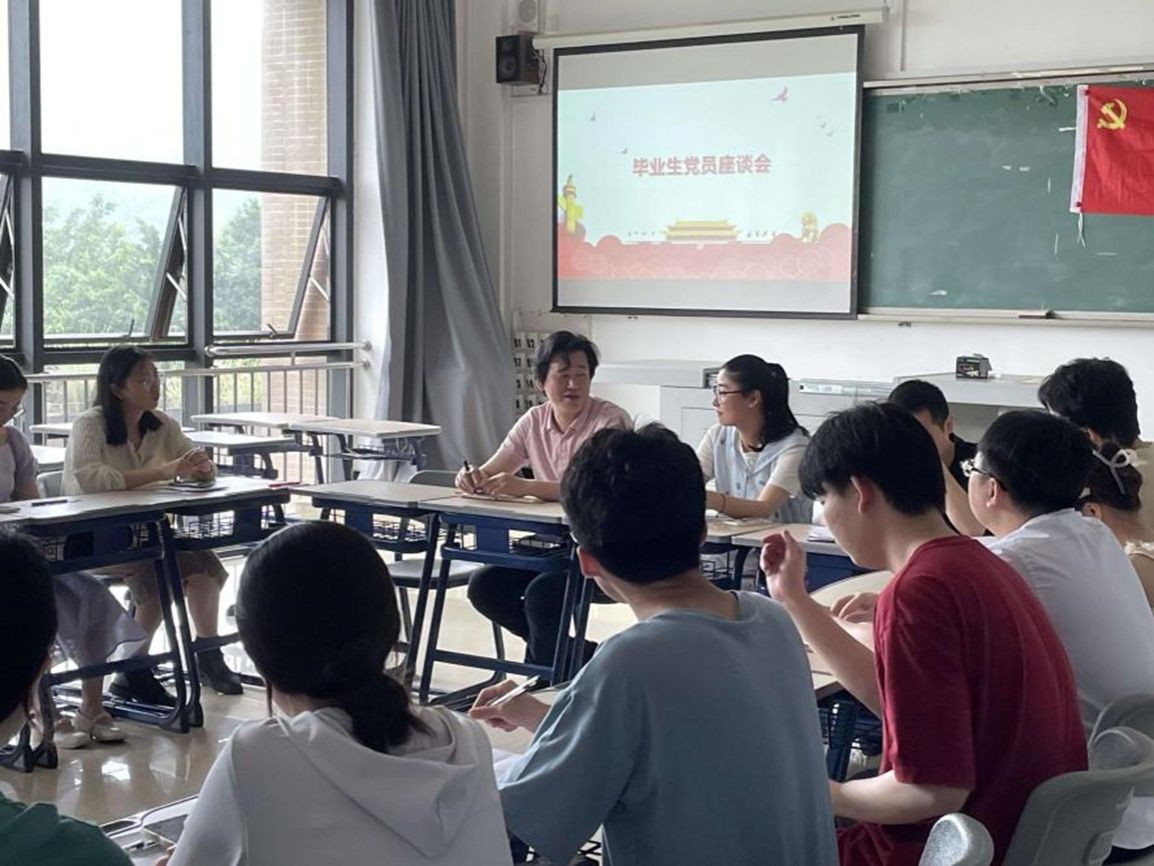 会上,支部围绕创新理论学习形式、支部服务水平等方面展开座谈。张雄伟书记和丁育诗老师认真倾听大家的意见、建议,积极回应毕业生党员关心关切,针对毕业生党员档案转出等问题一一出了解答。随后由丁育诗老师介绍毕业生党员组织关系转接工作具体要求,并开展离校教育。她强调,廉洁自律要从自身做起,毕业生党员要严格遵守党的纪律要求,增强党的纪律意识。最后,张雄伟老师寄语全体毕业生党员,希望党员们要以习近平新时代中国特色社会主义思想为指导,坚定理想信念,永葆共产党人的政治本色,树立科学的人生观,价值观,确立积极乐观的人生态度,在大家未来工作岗位上不断提高自身素质,为实现中华民族伟大复兴的中国梦贡献力量。