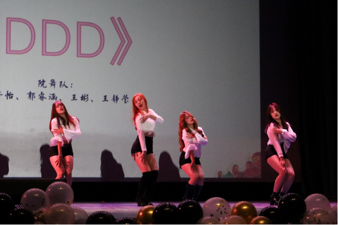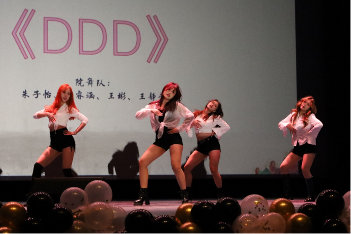 观众的应援棒挥舞着,舞台灯光交错,光影与此起彼伏的欢呼声中,是院舞队舞动的身影,一曲《drama》点燃全场。