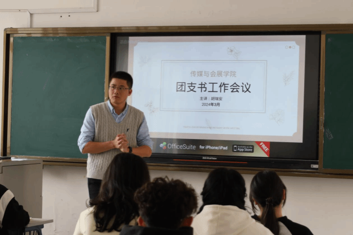 胡瑞安老师从新闻素材提供、奖励措施等方面,为班级负责人详细地说明班级宣传工作要点。团支书工作会议上,胡瑞安老师就加强团支书干部队伍建设,提升工作能力,同时对新学期的团日活动提出了要求和期望。